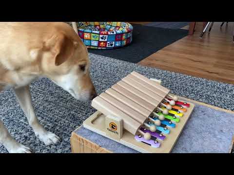 Eight wooden pipes in which the treats can be hidden, when pushed down will drop off their content as a reward to the pet. At the same moment on the xylophone, the sound will be generated. The pet is "playing" its song :)
