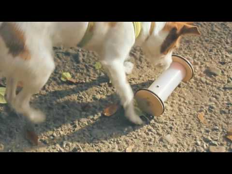 PET'S HAPPY ROLL is relatively easy game with 1 paw level of difficulty on the scale. It contains a transparent cylinder where you insert your dog’s favorite treats. The challenge is to make the treats fall out through 3 openings in the cylinder by rolling it on flat surface. This game is designed for small and medium breeds.